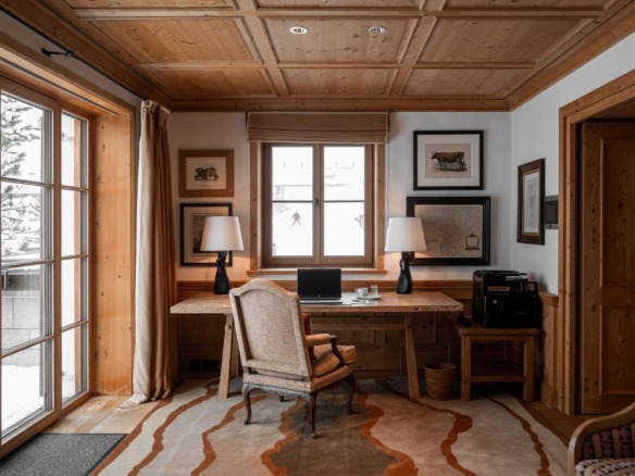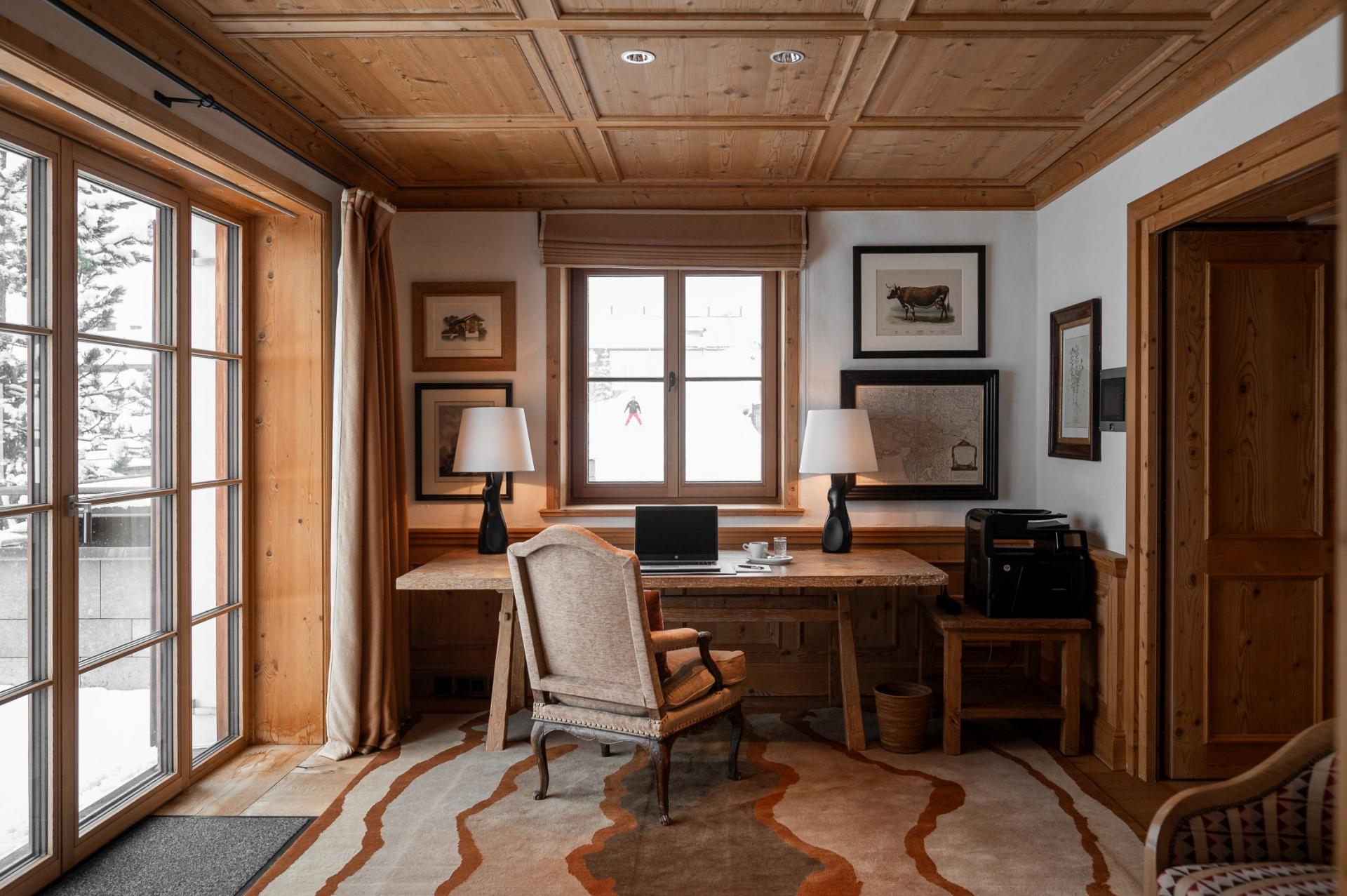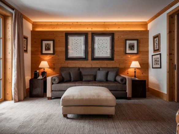 Entertainment & Lifestyle In addition to its spa cinema area, the chalet includes a cosy library for quiet moments and a dedicated office space for guests needing to stay connected. A private elevator provides seamless access to all floors, and underground parking accommodates up to eight vehicles.