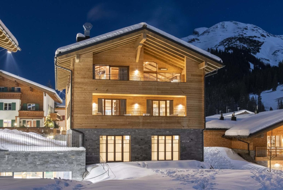 Chalech Residence, Lech A refined retreat in the heart of Lech, this elegant mountain home welcomes up to twelve guests across six beautifully designed bedrooms. Perfect for families or groups of friends, every element of the residence has been thoughtfully curated, from the soft lighting and harmonious color palette to the luxurious textures that define its serene ambiance.