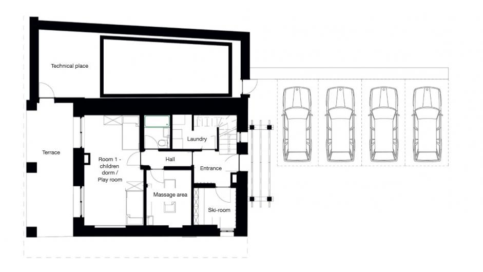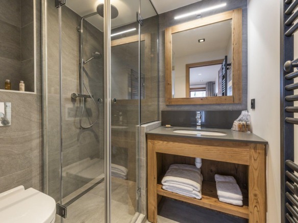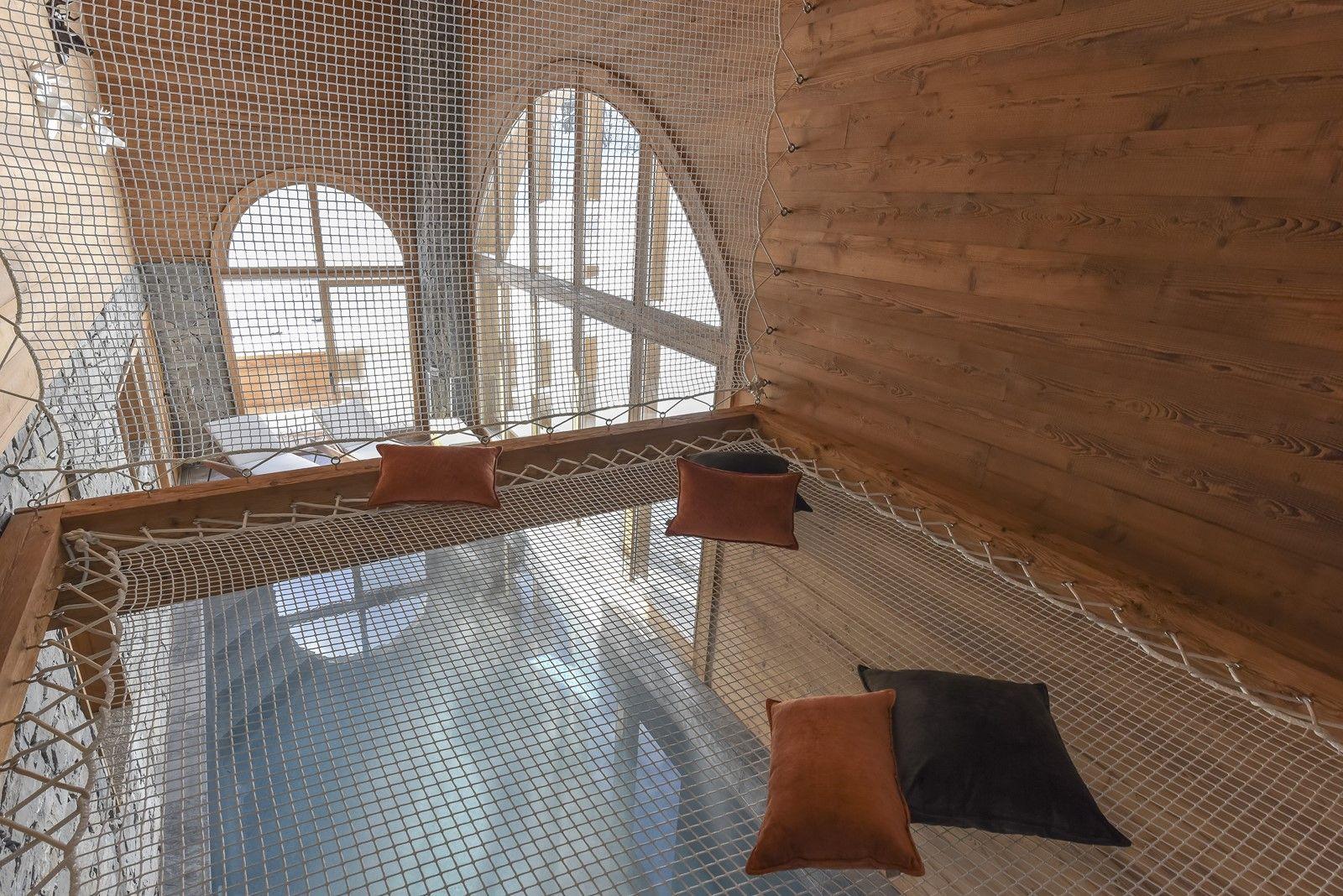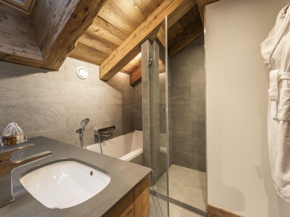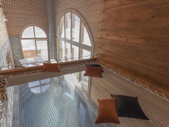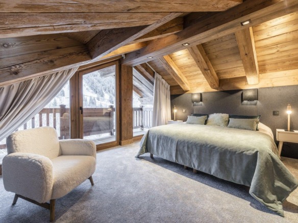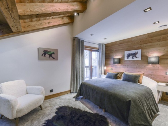 Bedrooms Accommodating up to 12 guests, the chalet offers five beautifully designed bedrooms. The entire top floor is dedicated to a 42m² master king-size suite, complete with a dressing room, office space, and private living area. A children’s double bunk room includes a separate games room, ensuring younger guests are entertained throughout the stay.