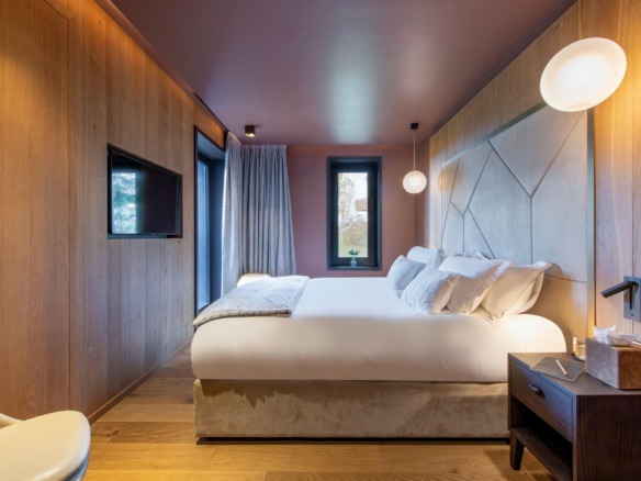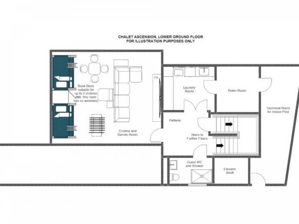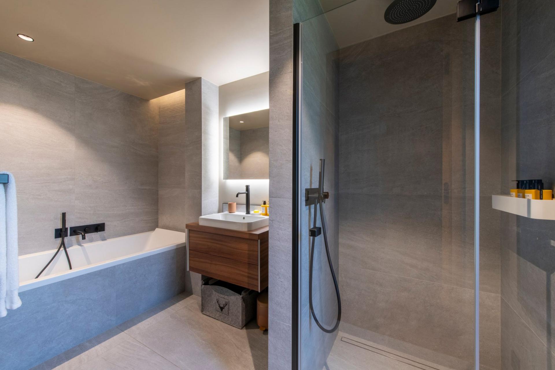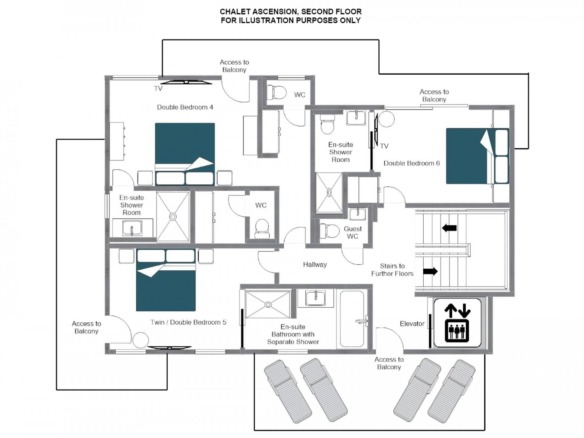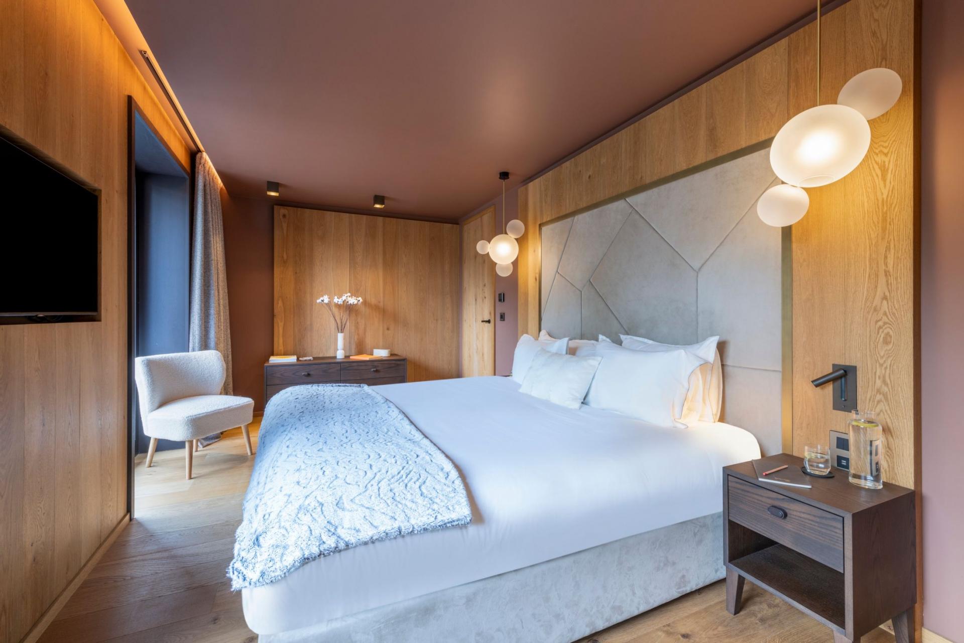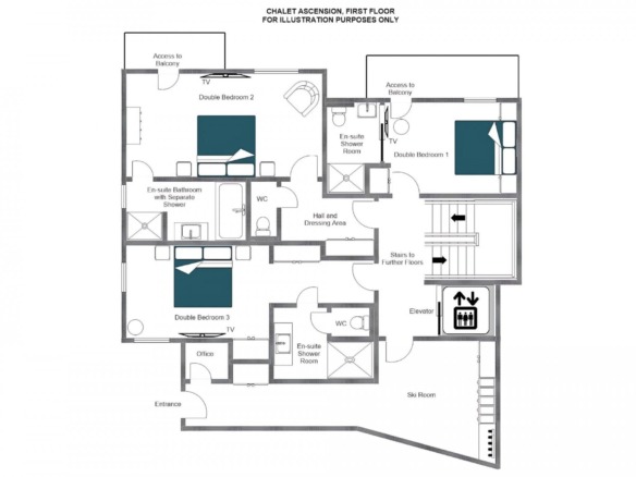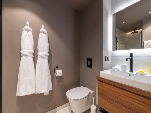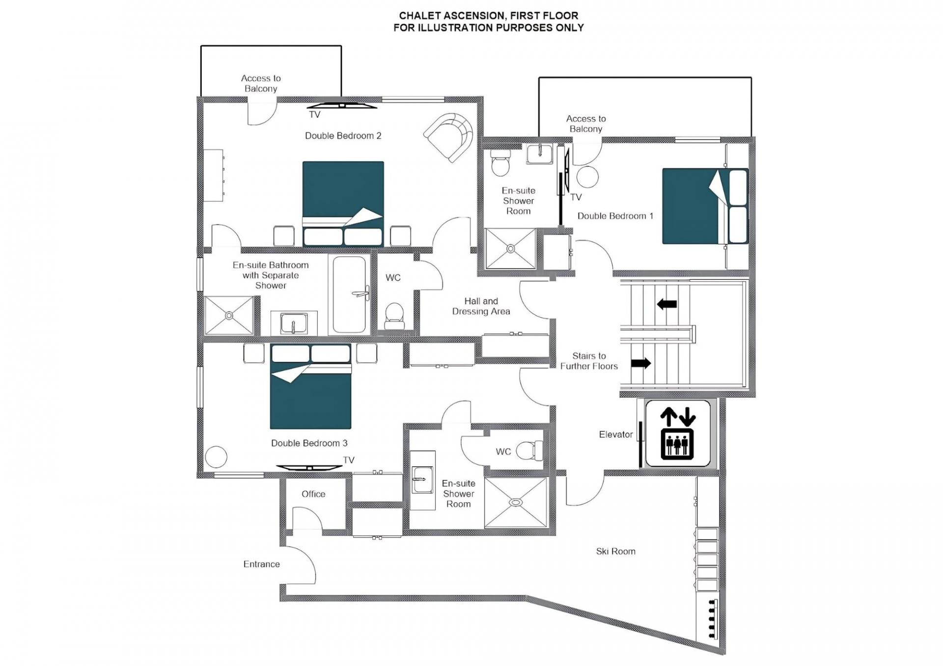 Chalet Ascension features six double bedrooms across its floors, each framed with traditional Alpine styling and large windows that fill the spaces with natural light. All bedrooms include en-suite bath or shower rooms, and several benefit from private balconies. A set of bunk beds for two children is positioned within the cinema room, making this an excellent choice for families seeking additional flexibility.