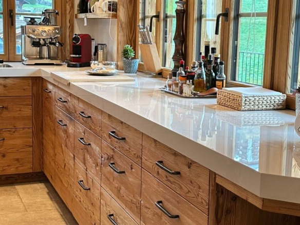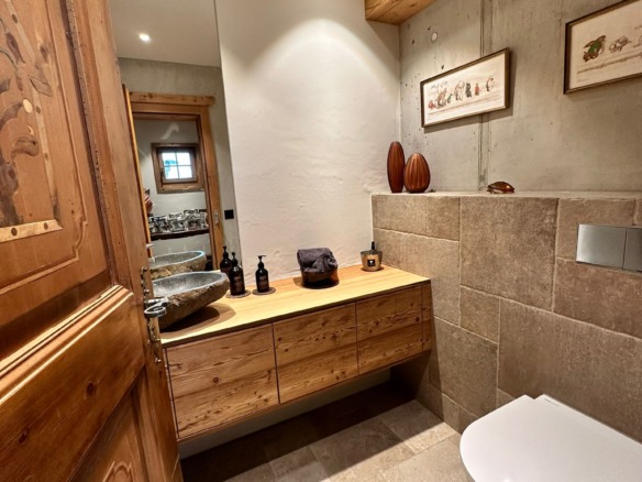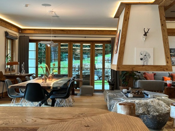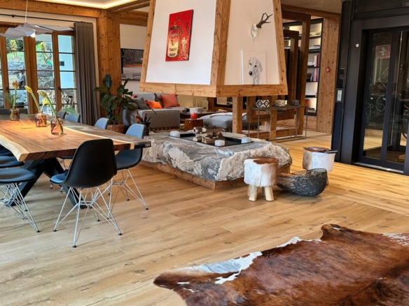 Thoughtfully designed across multiple levels, the chalet features five elegant bedrooms and five beautifully appointed bathrooms, offering ample space and privacy for families or groups of friends. Each room has been crafted with meticulous attention to detail, combining warm alpine textures with sleek, contemporary finishes.
