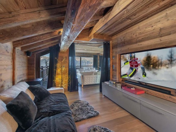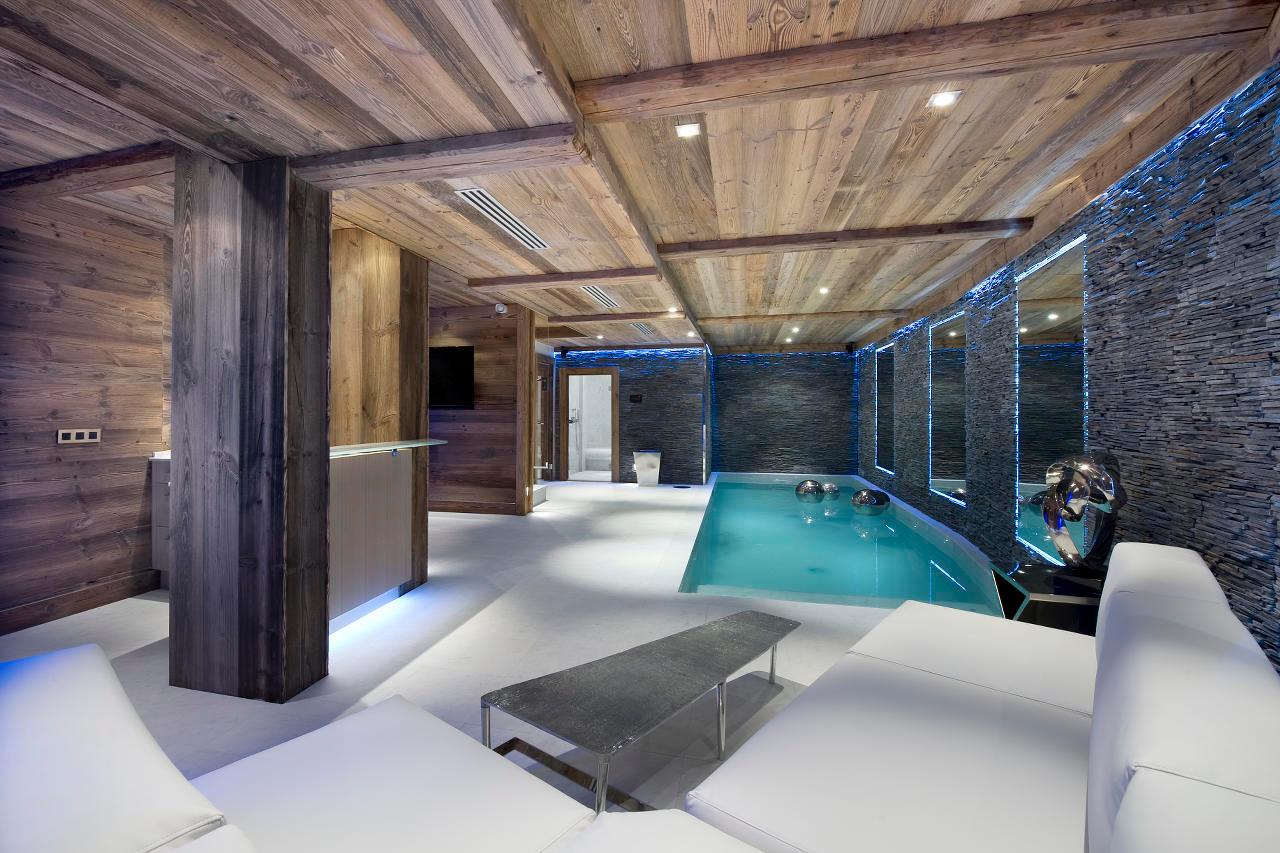 After skiing, retreat to the chalet’s dedicated wellness level. This serene area includes a swimming pool, Hammam, and massage room, offering everything needed for rejuvenation. A stylish bar and a cosy TV lounge complete the space, perfect for unwinding in a more casual setting.