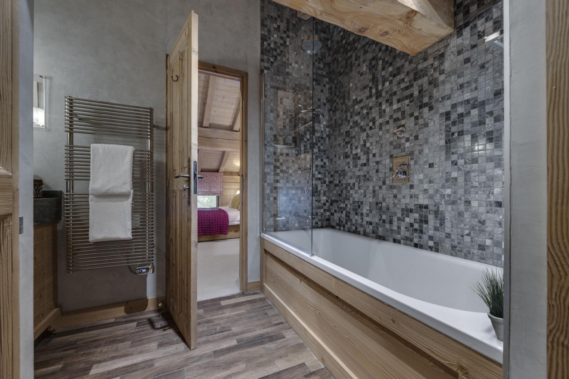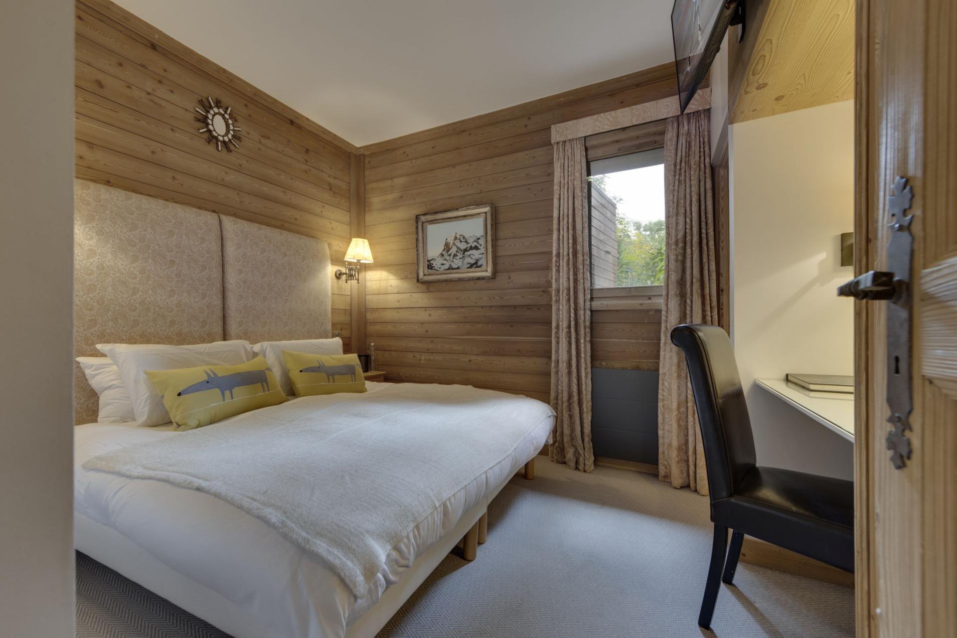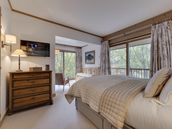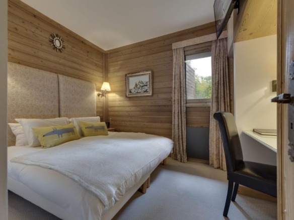 Bedrooms Chalet Elephant Blanc accommodates up to 10 guests in five charming double bedrooms. The ground floor features the spacious master suite and three additional bedrooms that can be configured as double or twin. The final bedroom occupies a private top-floor position and also offers flexible double or twin bedding. All rooms include stylish en-suite facilities and a welcoming, traditional alpine aesthetic.