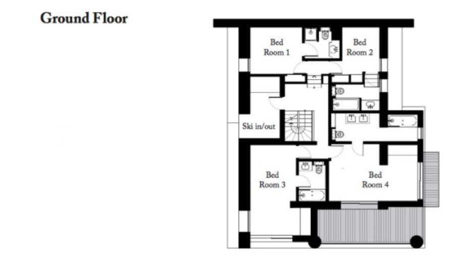 Outdoor Spaces A sheltered wraparound balcony offers beautiful mountain views, outdoor dining and a hot tub for relaxing after the slopes. The chalet’s ski room opens directly onto the piste, ensuring effortless ski-in, ski-out access.