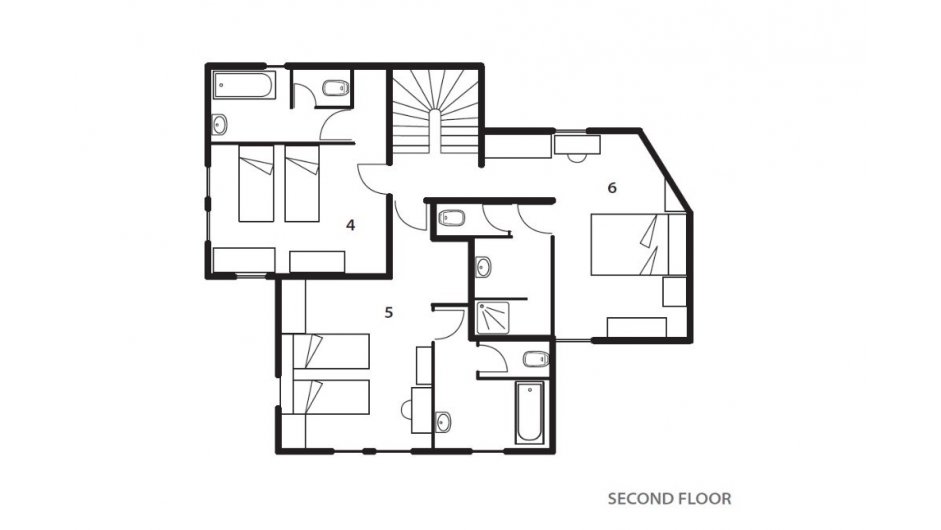 BEDROOMS Chalet La Chapelle features seven comfortable en-suite bedrooms across four floors. Each room benefits from balcony access and a private en-suite bath or shower room. A mix of double and twin configurations ensures flexibility for families and larger groups travelling together.