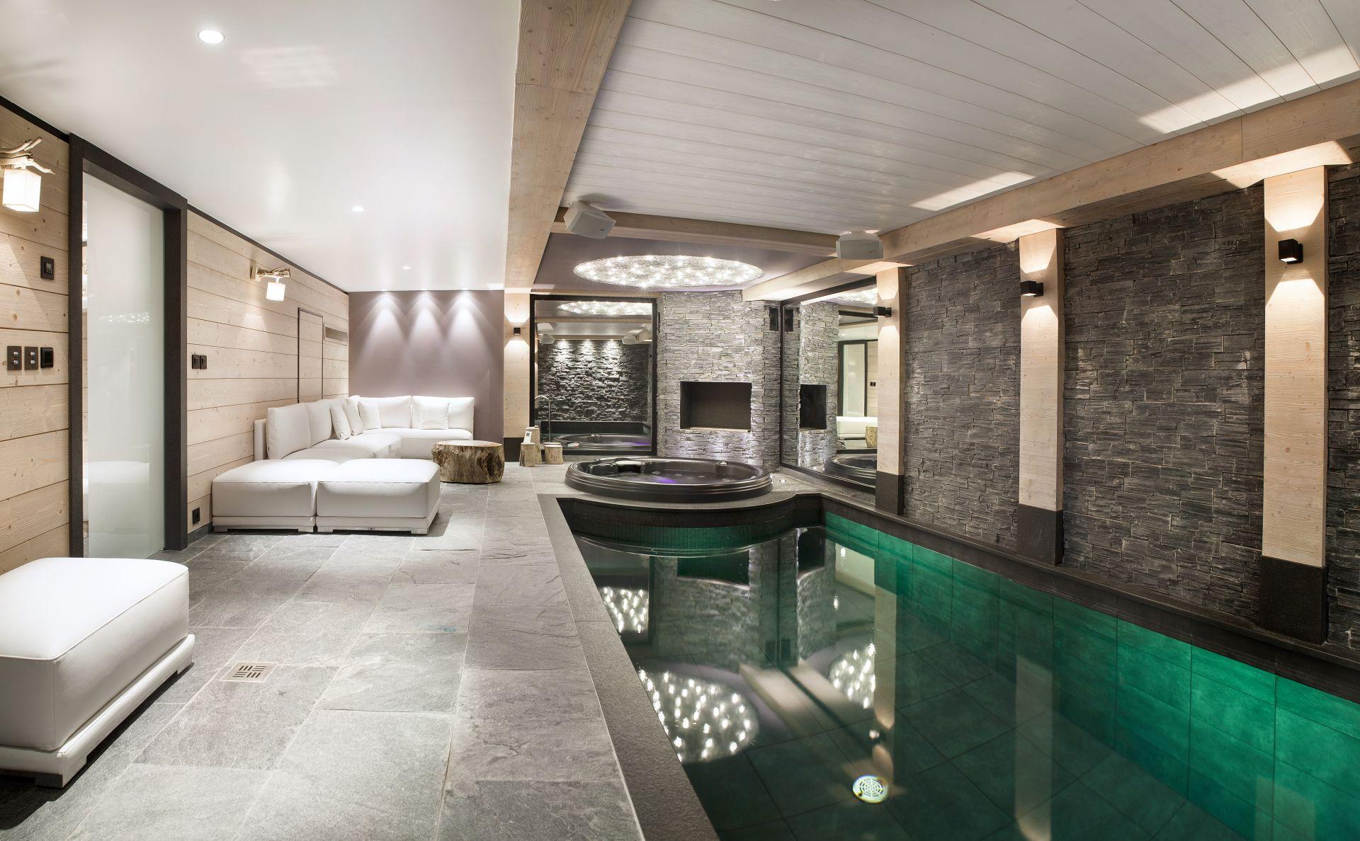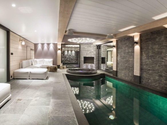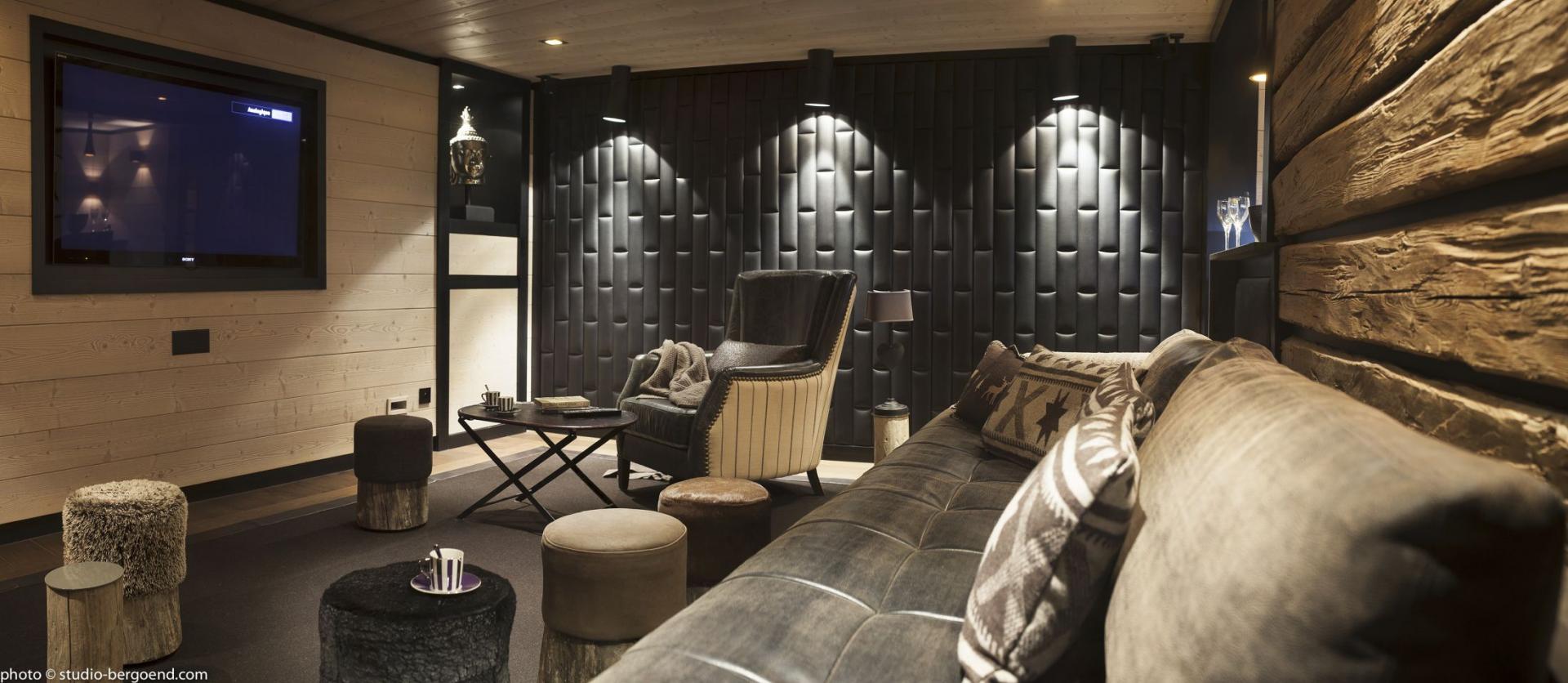 For relaxation after a day on the slopes, Chalet La Colombe features a private wellness area on the lower level. Here, guests can unwind in the Hammam, soak in the indoor hot tub, or take a quiet swim in the chalet’s serene indoor pool. For quieter evenings, a home cinema room with plush seating and warm lighting offers the perfect setting for family film nights or a cosy wind-down with a glass of wine.