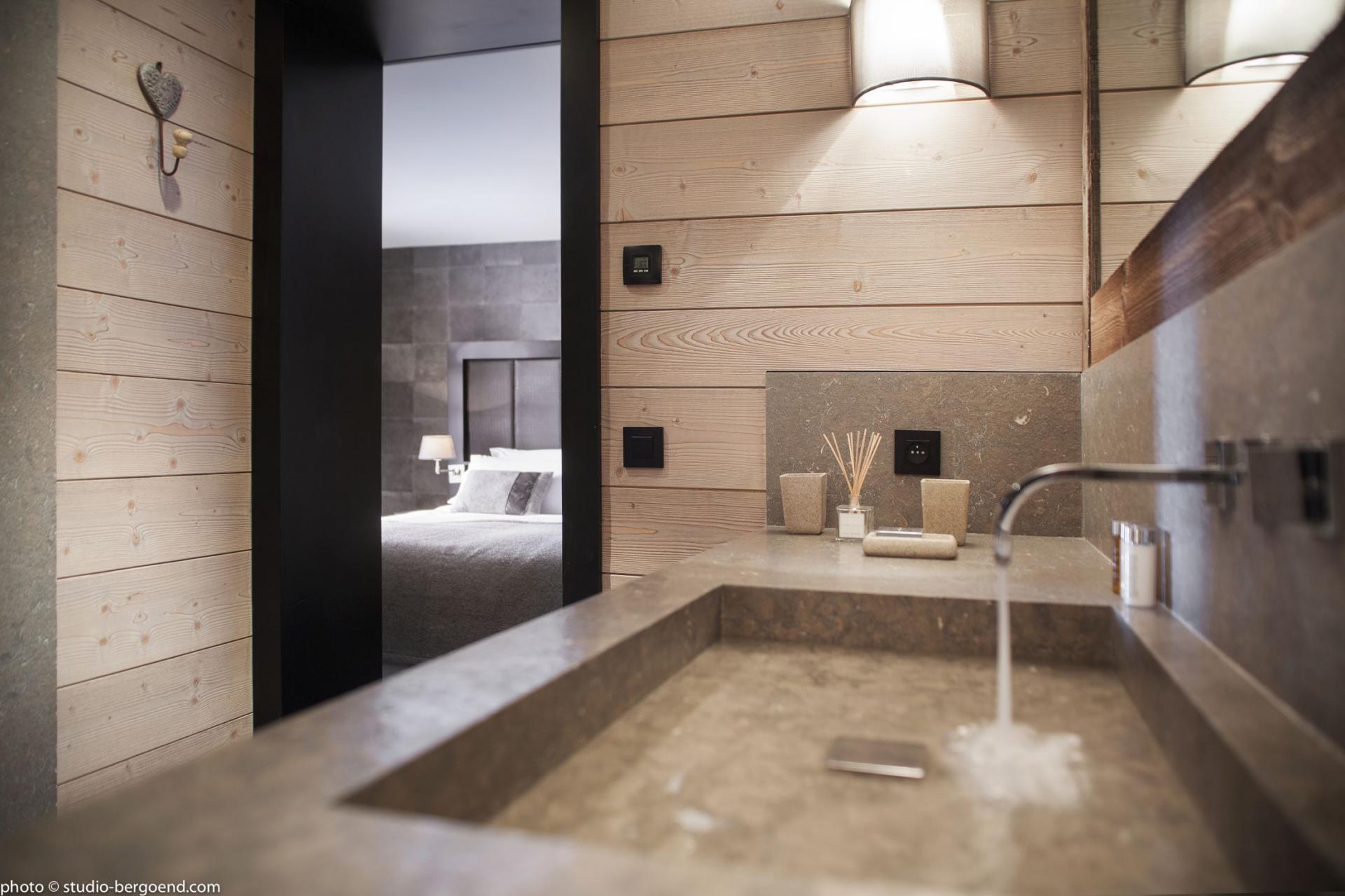 Accommodation at Chalet La Colombe is designed with both style and comfort in mind. Four beautifully appointed double bedrooms and a charming bunk room sleep up to eight adults and two children. Each suite features luxurious fabrics, fine wood finishes, and elegant en-suite bathrooms. Several rooms open directly onto terraces or balconies, offering peaceful corners to enjoy morning sun or mountain air.