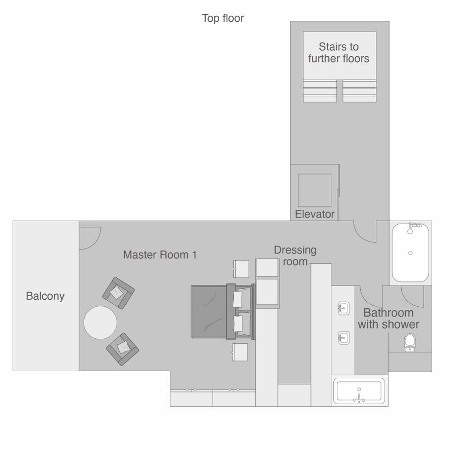 1 x Master double bedroom with private balcony, dressing room, lounge area and en-suite bathroom with shower.