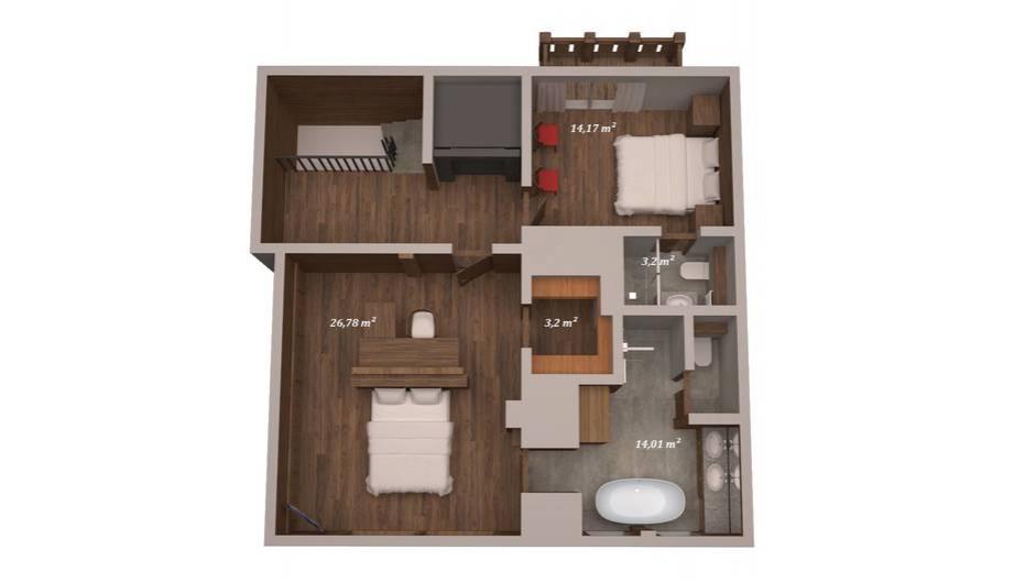 1 x Double bedroom with terrace access and en-suite bathroom.