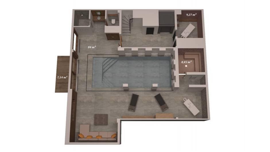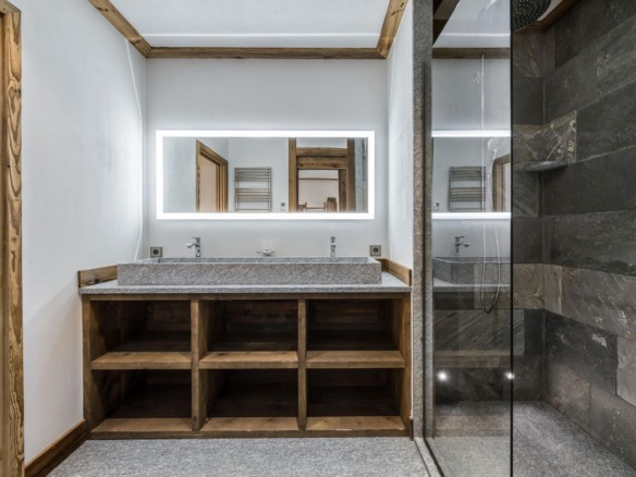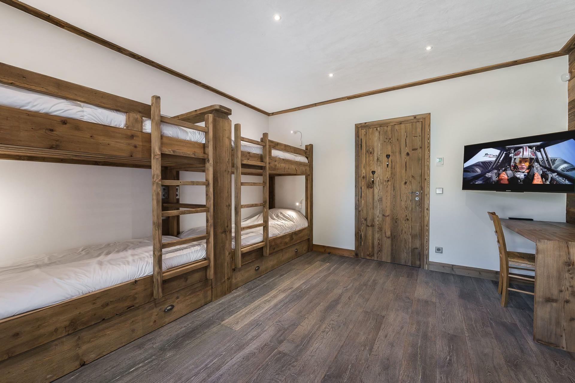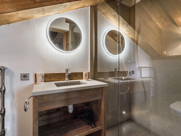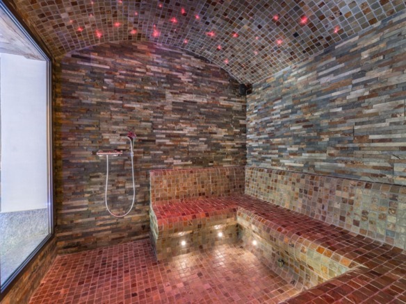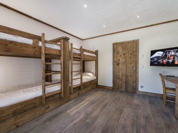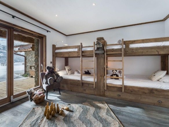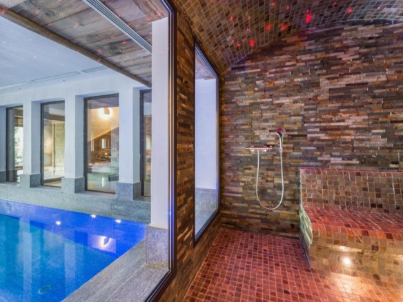 The chalet’s wellness area offers a sanctuary of relaxation after a day on the slopes. A 7.5m indoor swimming pool provides the perfect spot for leisurely swims or playful moments with children. Adults can unwind in the Hammam, which seats up to six, or enjoy a professional massage in the dedicated treatment room for a truly restorative experience.