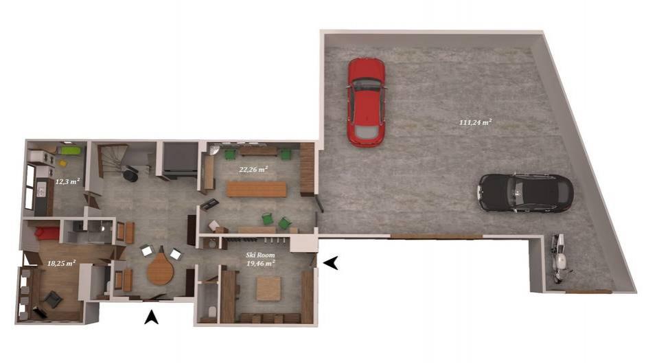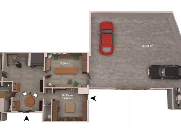 For convenience, Chalet Queen Mijane includes a well-equipped ski room with heated boot racks, a laundry area, an office, and a wine cellar. The private garage provides secure parking and ensures guests’ vehicles remain snow-free throughout their stay.