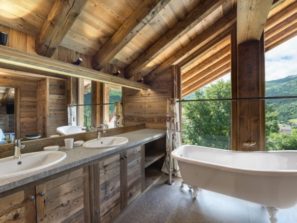 Accommodation at Chalet Queen Mijane is spread across seven en-suite bedrooms, many of which offer flexible twin or double configurations—ideal for multi-generational families or groups. The master suite, perched on the top floor, enjoys breathtaking views and features a luxurious roll-top bath positioned to make the most of the scenery. Three further double bedrooms, two of which can be arranged as twins, provide serene comfort and ample space. A charming studio suite, complete with seating area and kitchenette, offers independence for guests or staff, while a cosy single bedroom with trundle beds and a stylish quad bunk room—suitable for both adults and children—complete the versatile sleeping arrangements.
