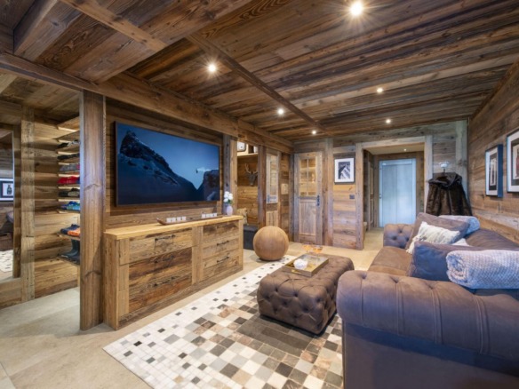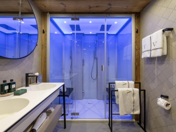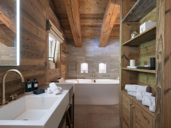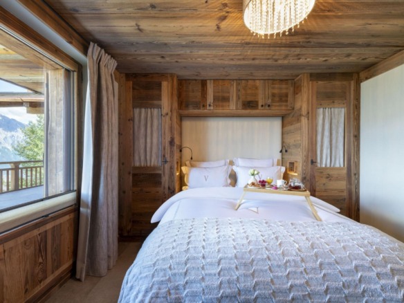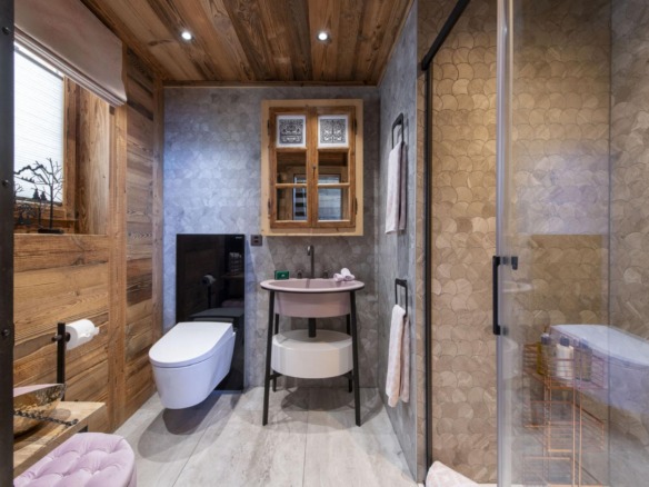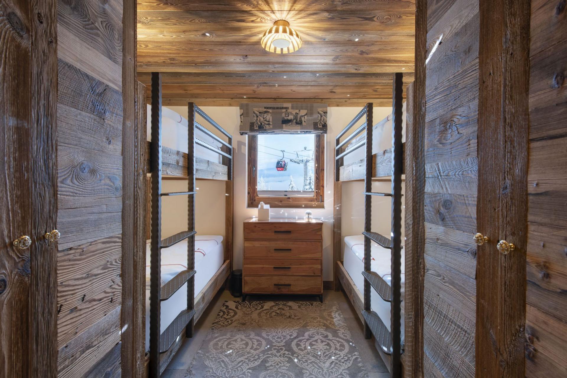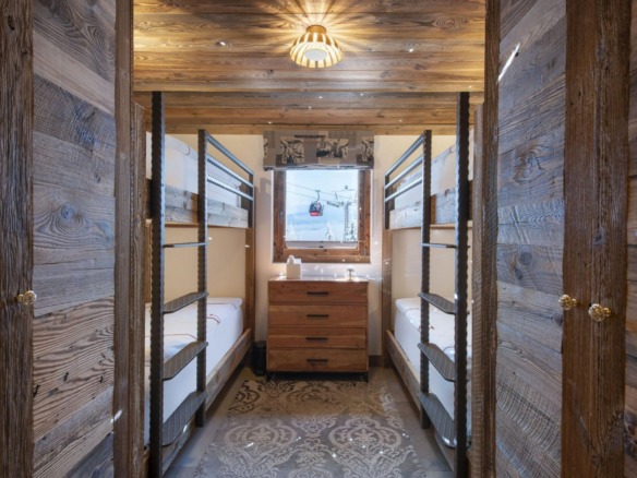 Five well-appointed bedrooms provide restful sanctuaries for up to twelve guests. The master suite includes a private balcony and en-suite bathroom, while two double rooms and a twin bedroom share spacious bathrooms. A charming bunk room accommodates up to four guests, making the chalet particularly well-suited for families with children.
