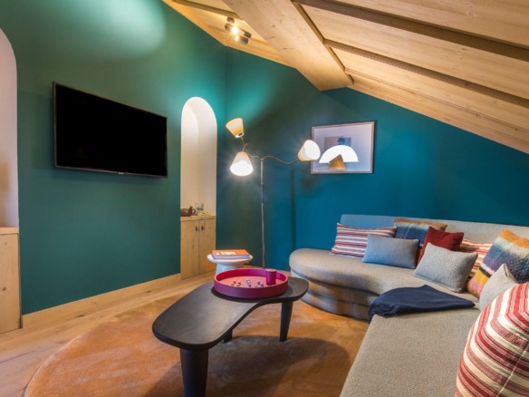 Property Overview Boldly designed with vibrant colours and unique touches, Chalet Eglantine stands out through its modern charm and playful sophistication. Spread across multiple floors with private lift access, the chalet provides generous living areas, refined bedrooms, and a seamless indoor link to the main hotel.