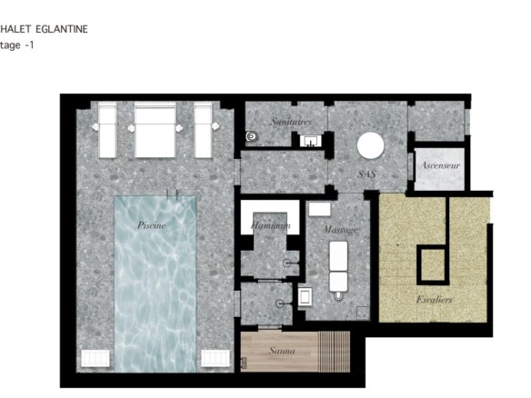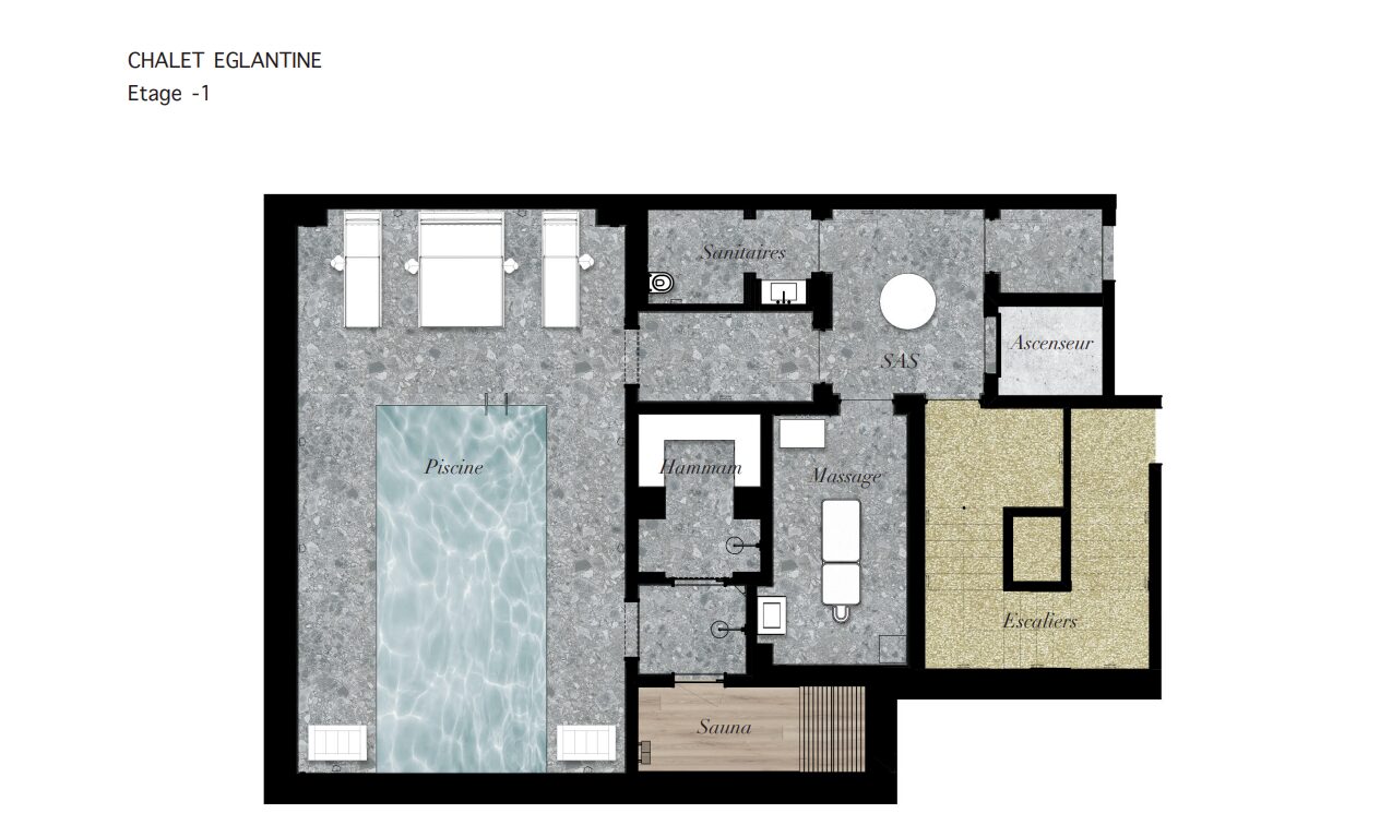 Wellness & Relaxation A private spa occupies the lowest level of the chalet, offering a tranquil space to unwind. Facilities include an indoor swimming pool, Hammam, sauna, and a massage room where treatments can be arranged. This exclusive spa floor ensures complete relaxation throughout your stay.