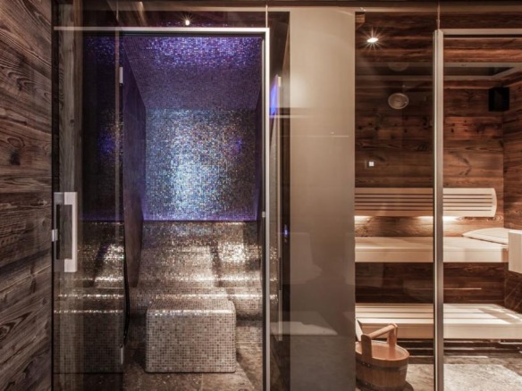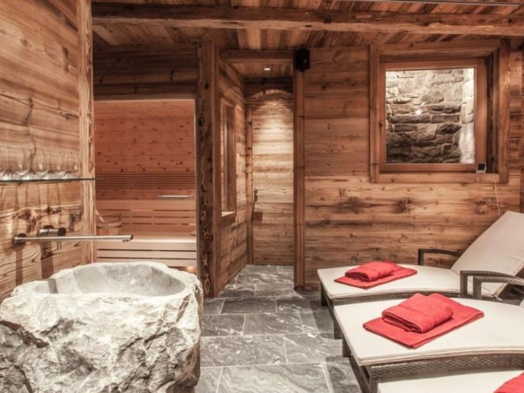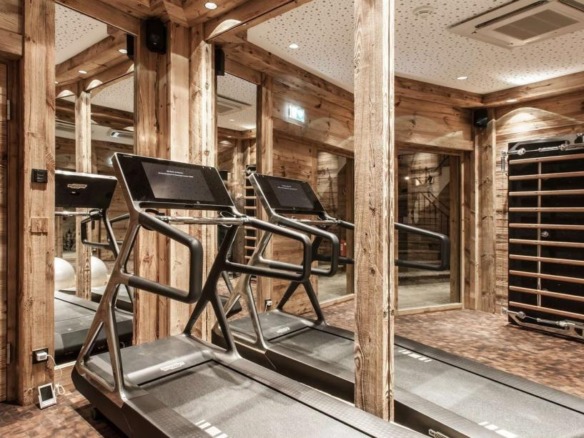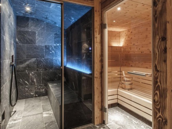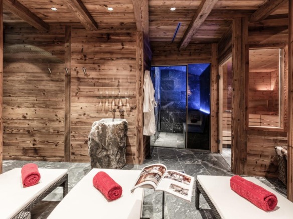After a day on the slopes, the lodge’s private spa invites you to slow down and recharge. The wellness space, designed with raw stone and pine, includes a steam room, Finnish sauna, experience shower, and tranquil relaxation area. A modern fitness suite is also available for guests wishing to stay active beyond the pistes.