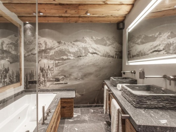 Hahnenkamm Lodge features five exceptional suites, each offering an elegant retreat with access to private balconies and glorious views. The showpiece is the Hahnenkamm Master Suite—more private residence than bedroom. Complete with its own lounge, dining space, kitchenette, and fireplace, this suite also boasts a freestanding bathtub, plus private spa facilities including a sauna and steam room.