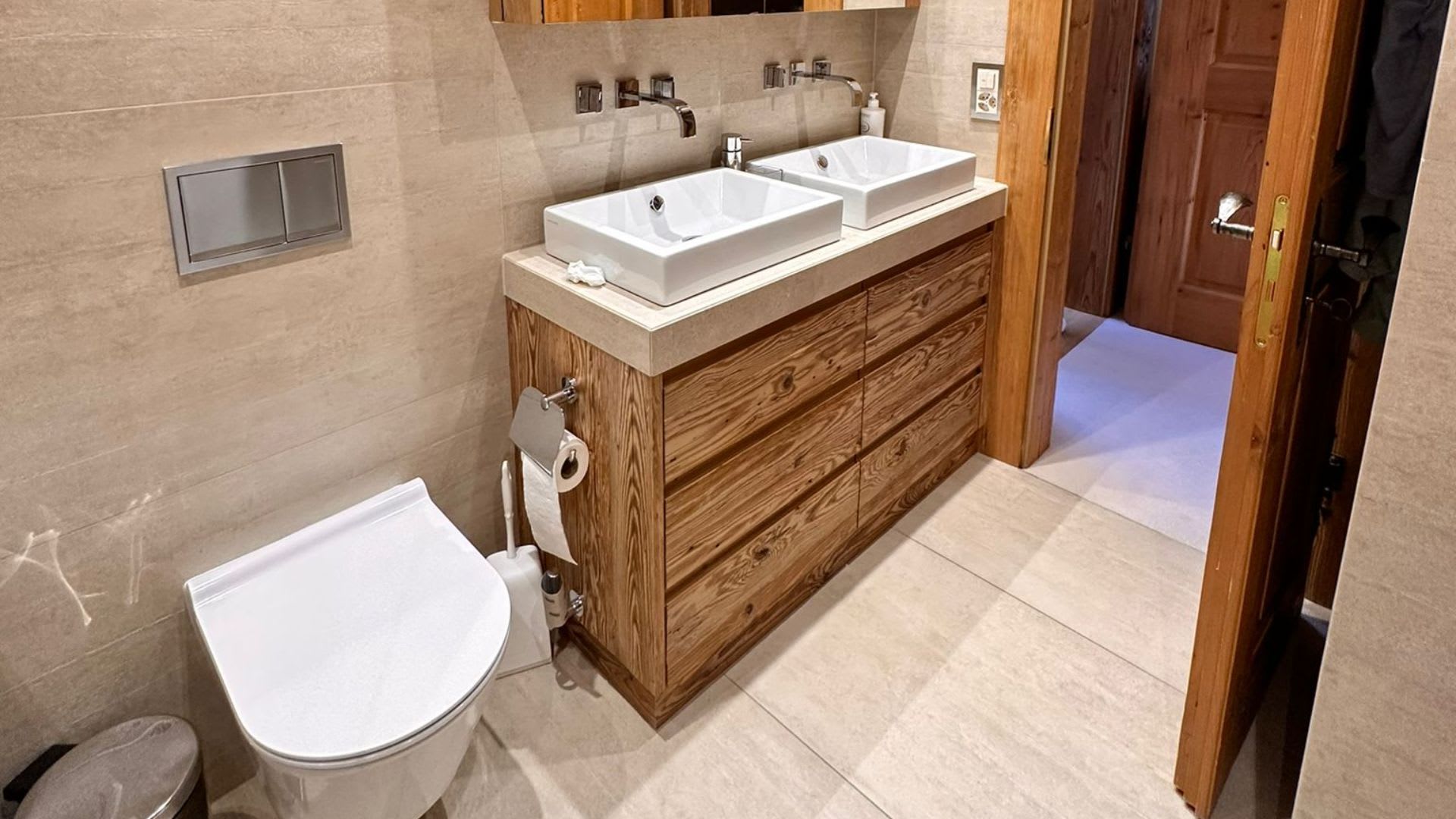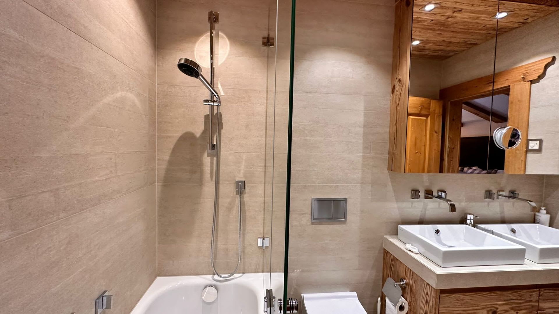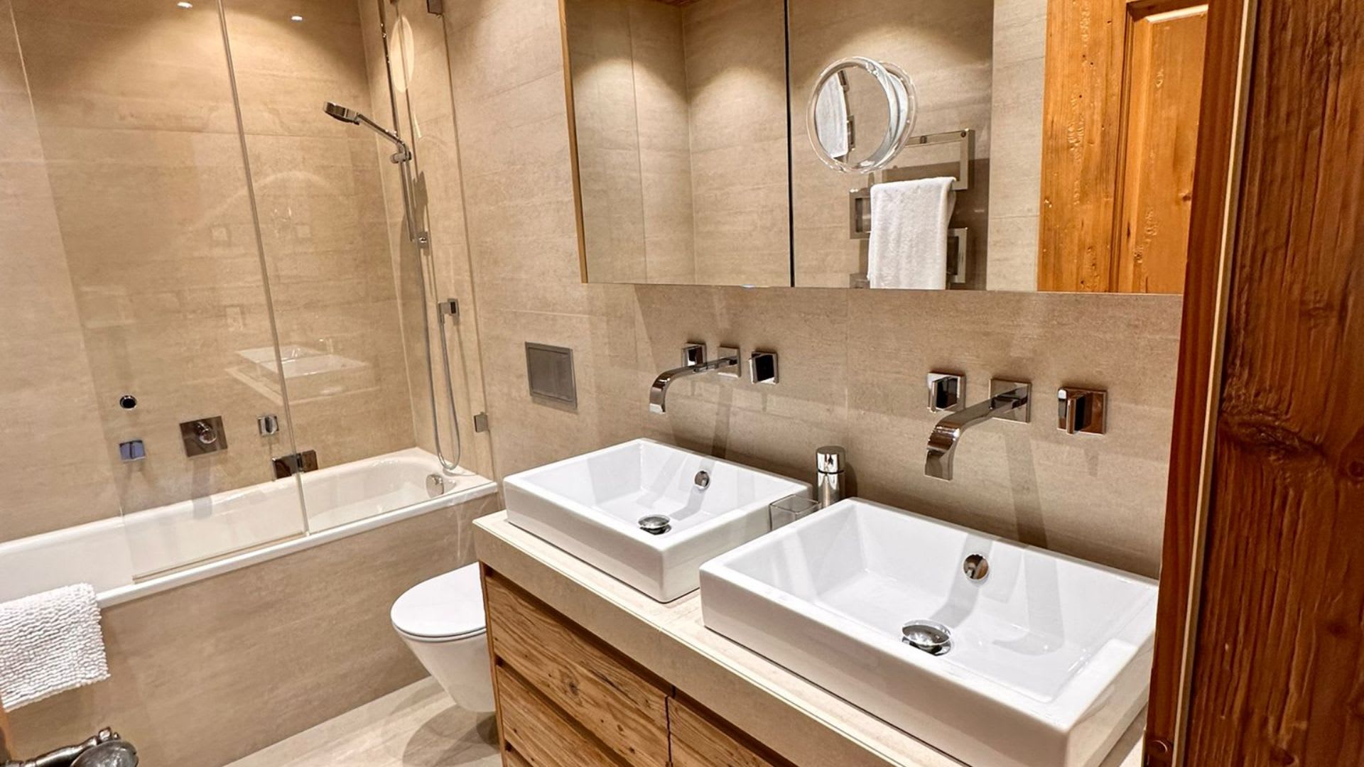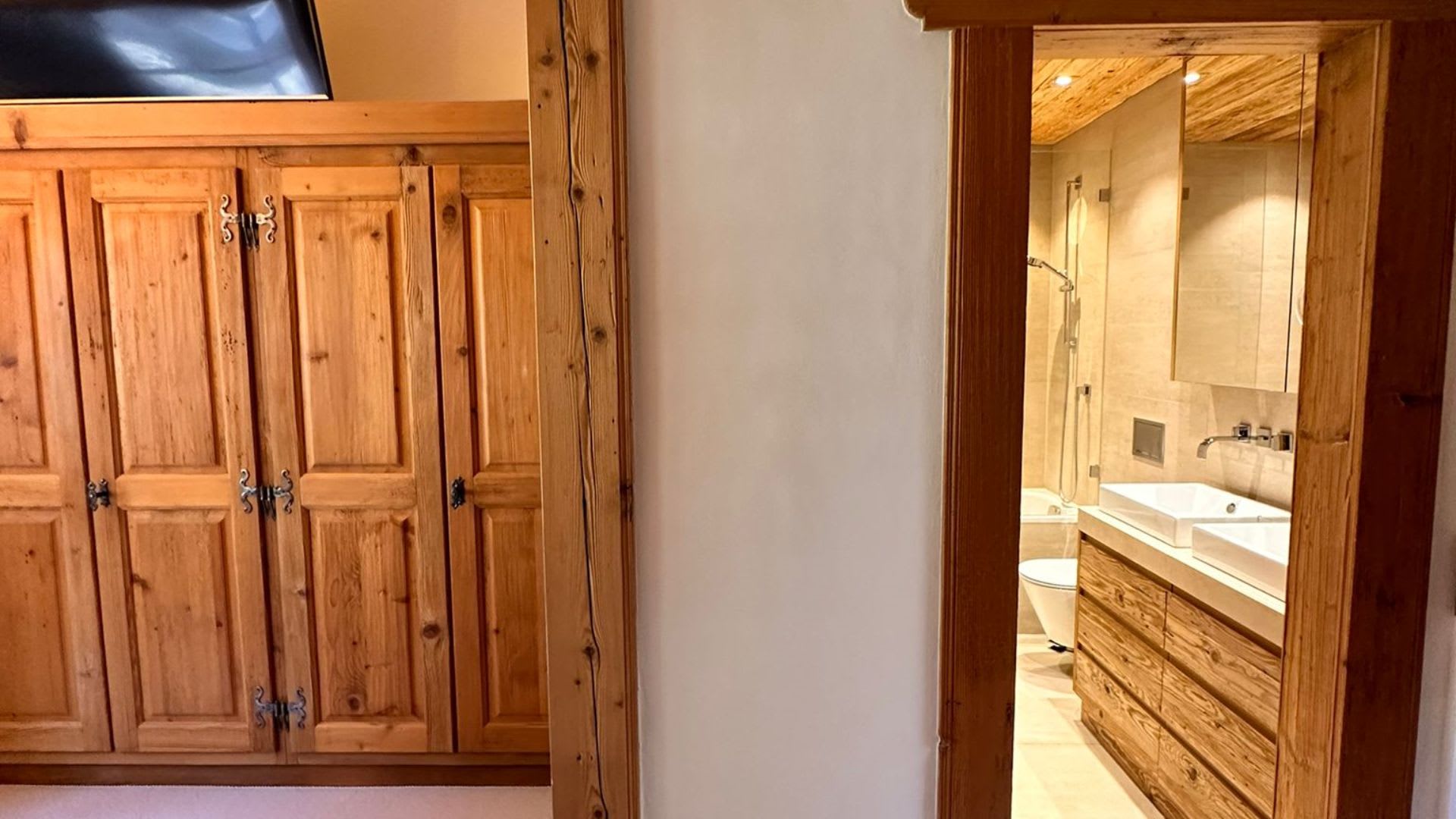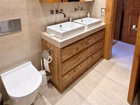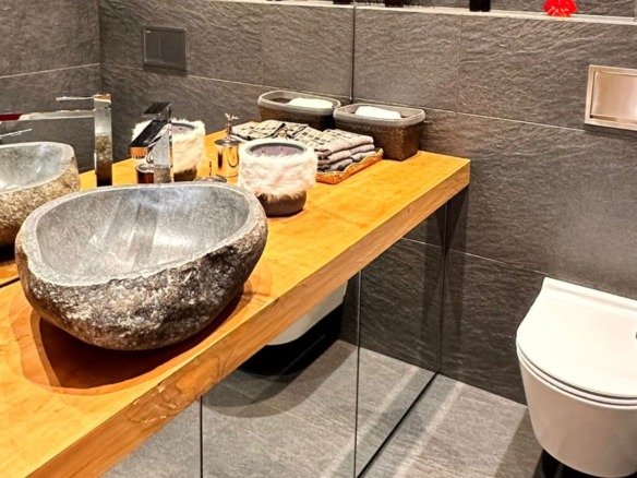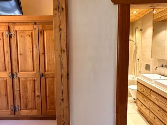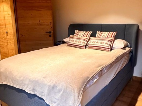 The chalet’s interiors are thoughtfully arranged, with spacious bedrooms and open-plan living areas that invite rest and connection. Natural materials, soft textures, and carefully curated furnishings bring a sense of comfort and ease, while panoramic mountain views provide a breathtaking backdrop from every room.
