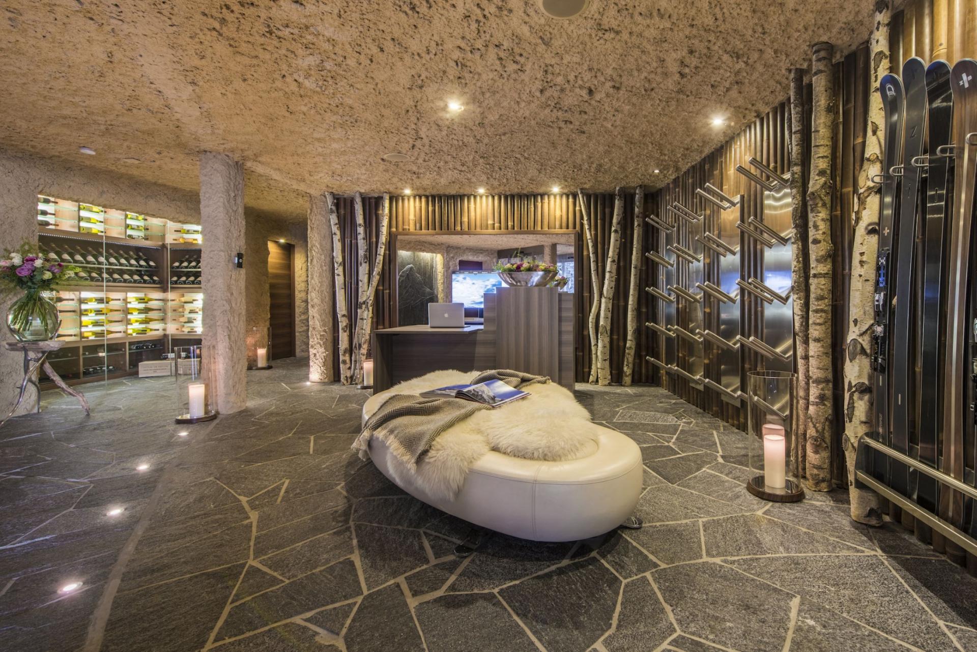 Conveniently connected by a private internal elevator servicing all six floors, The Chalet Luxe ensures effortless movement throughout the property. The entrance level houses a state-of-the-art ski room with boot warmers and an extensive wine cellar, underscoring the chalet’s meticulous attention to detail and dedication to exceptional luxury living.