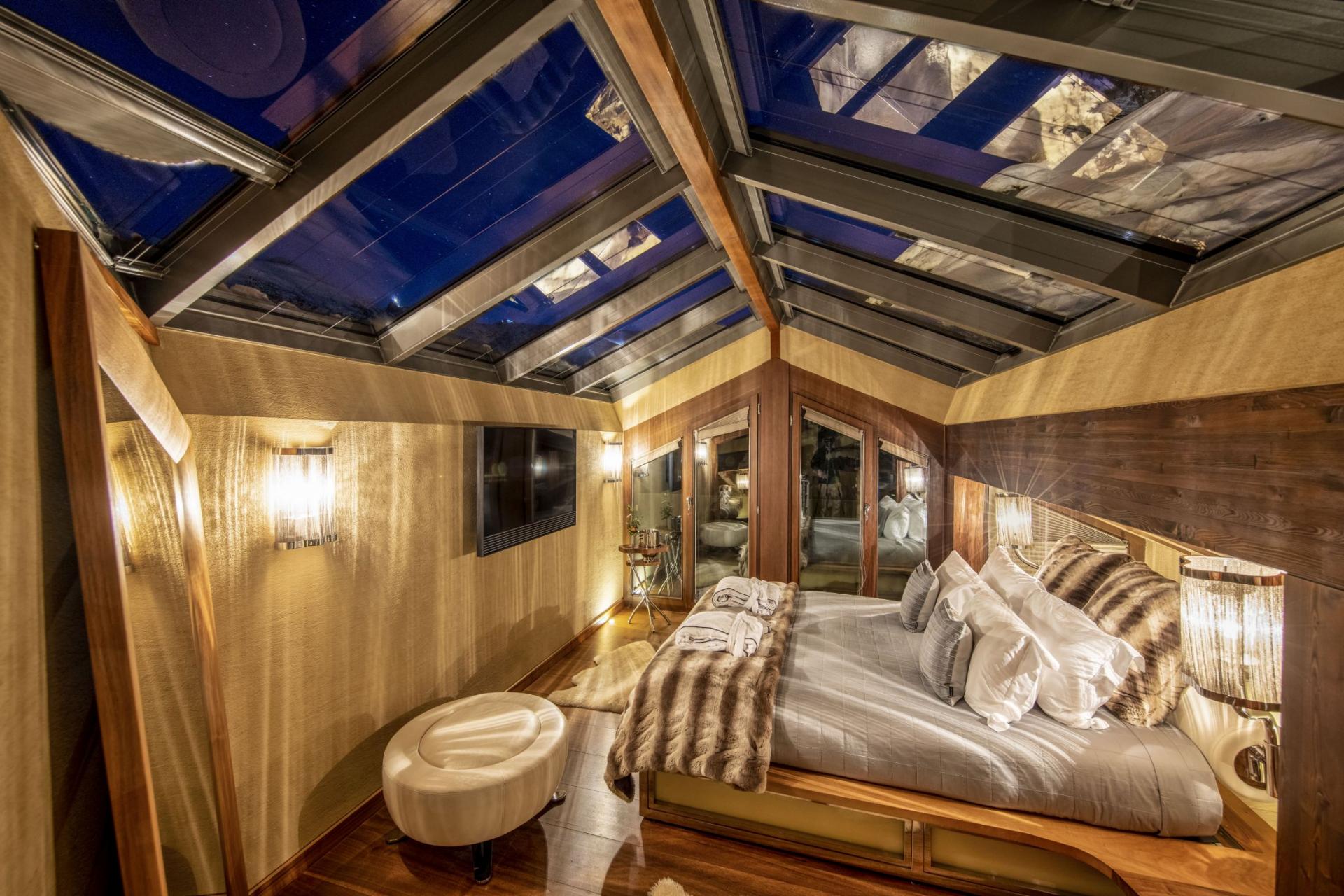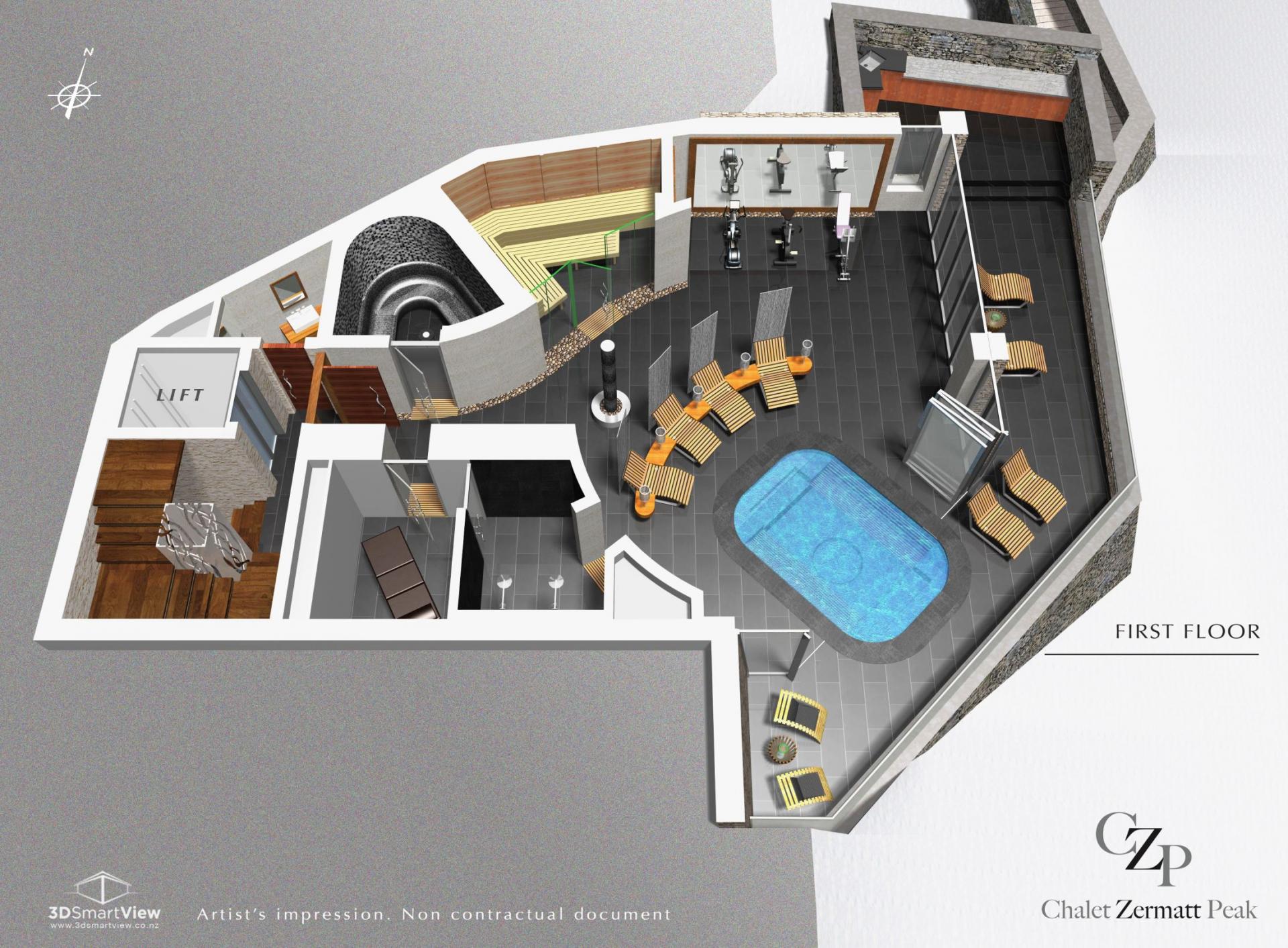 Exclusively occupying the ground floor, the wellness sanctuary at The Chalet Luxe is among the most impressive in the region. Sparkling chandeliers reminiscent of delicate icicles complement the refined contemporary design, crafting a space of pure tranquility. The expansive indoor/outdoor Jacuzzi invites you to unwind while taking in panoramic views of the majestic Matterhorn. On clear blue-sky days, the terrace’s glass walls can be fully retracted, merging indoor luxury with fresh alpine air. Indulge in revitalizing treatments in the Hammam, or enjoy the soothing warmth of both a Finnish dry sauna and a Swedish wet sauna. A fully equipped gym caters to fitness enthusiasts, completing this holistic wellness experience.